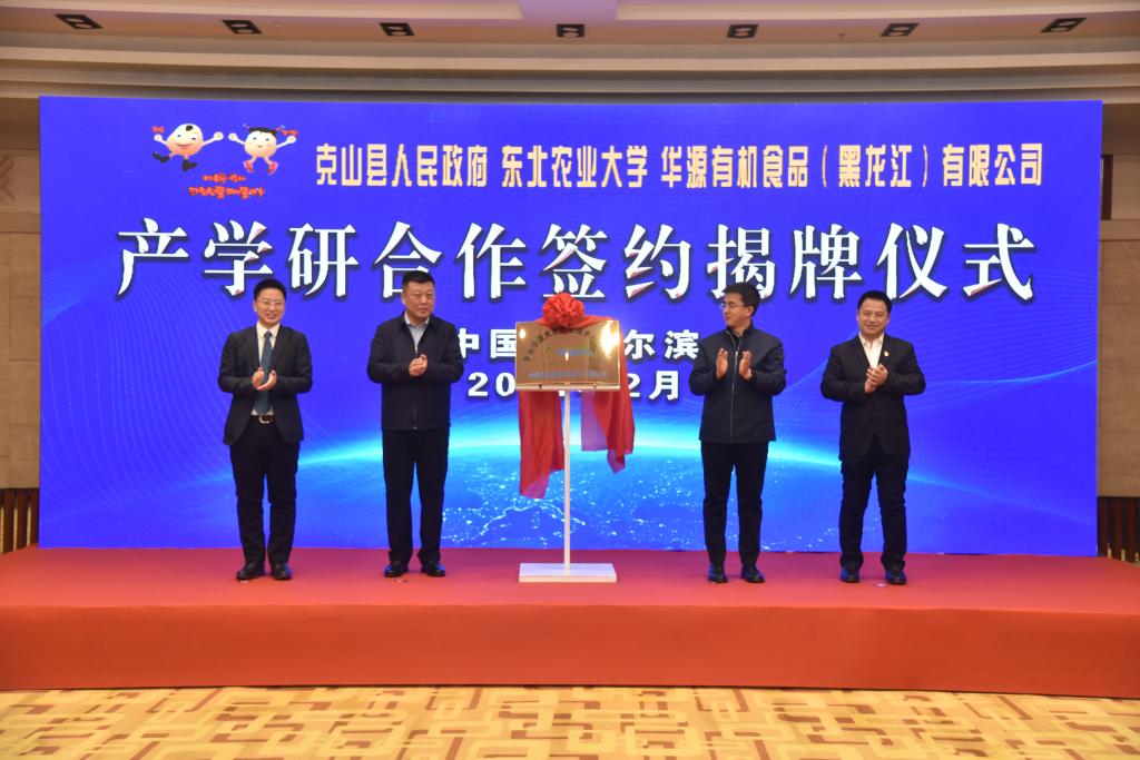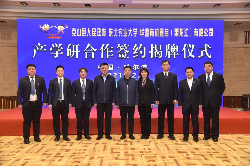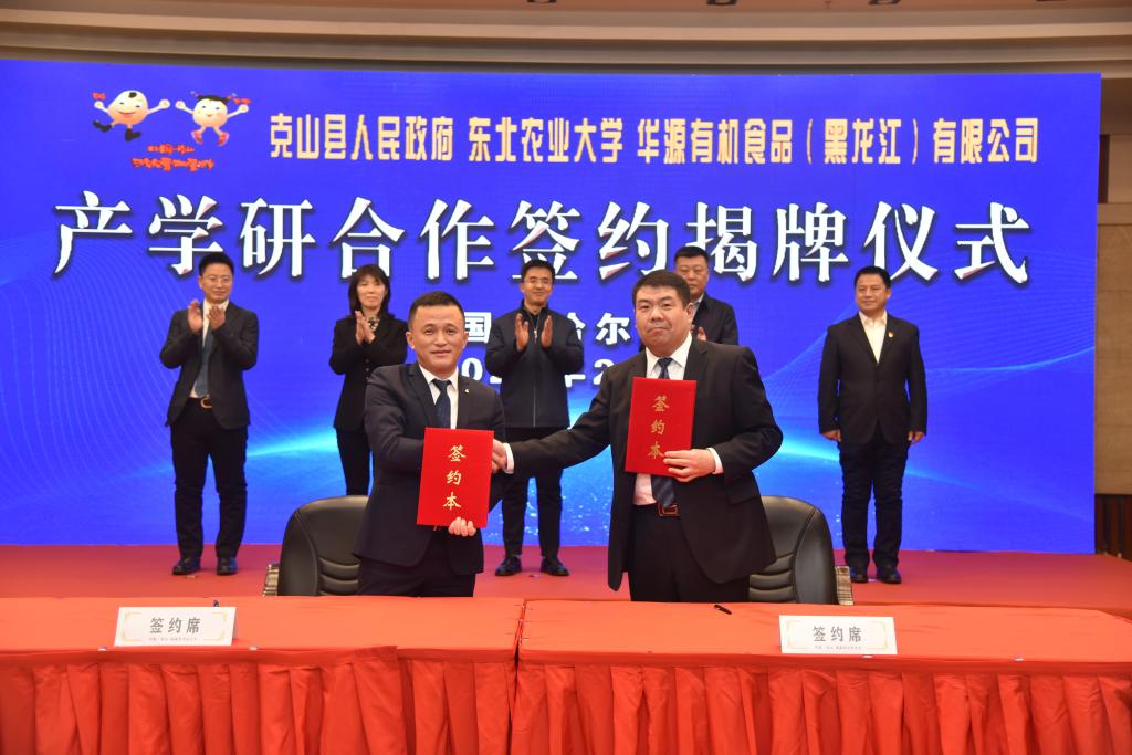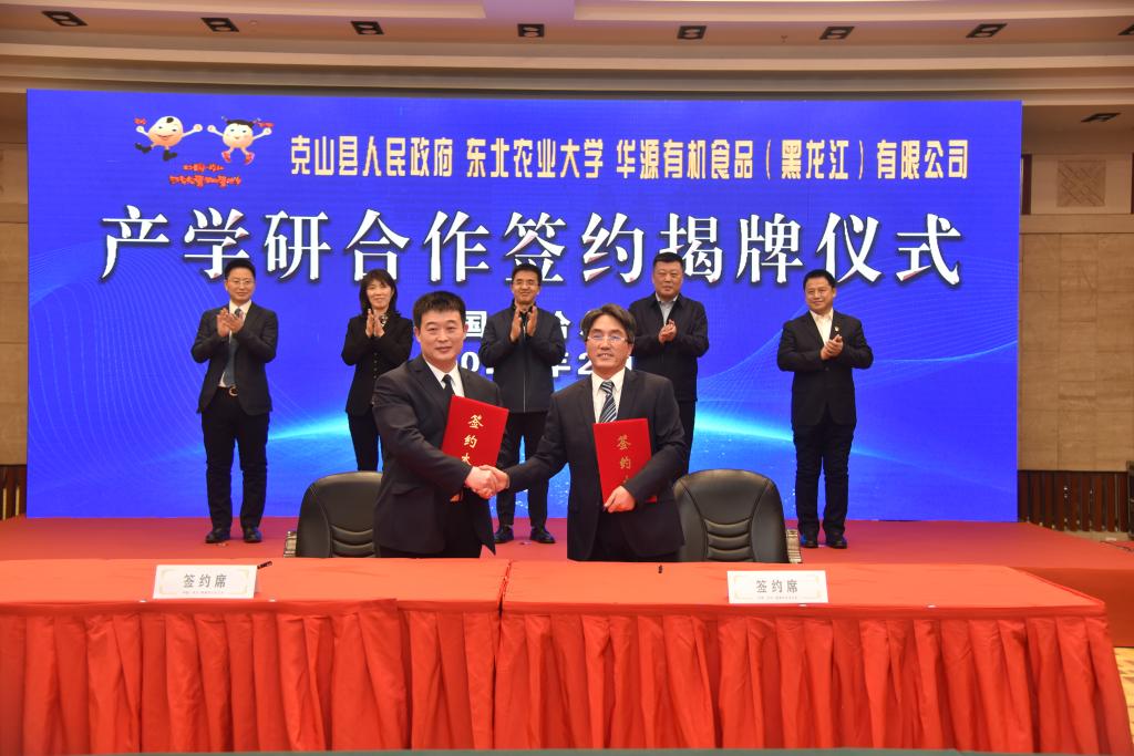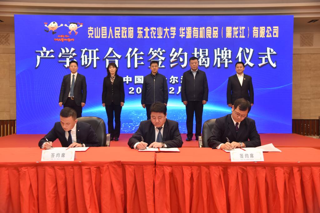 2月23日,我校与克山县人民政府、华源有机食品(黑龙江)有限公司合作签约揭牌仪式在华旗饭店国际会议中心隆重举行。我校副校长刘竹青,齐齐哈尔市科技局党组书记、局长黄静,克山县县长韩大勇,华源有机食品(黑龙江)有限公司董事长吴章祝出席会议。我校科技园与产业管理中心主任王磊、yl6809永利官网院长陈庆山等10位领导和专家,华源有机食品(黑龙江)有限公司企业相关负责人,克山县委组织部、县人才办等有关单位负责同志参加会议。会议由我校新农村发展研究院院长朱志猛主持。