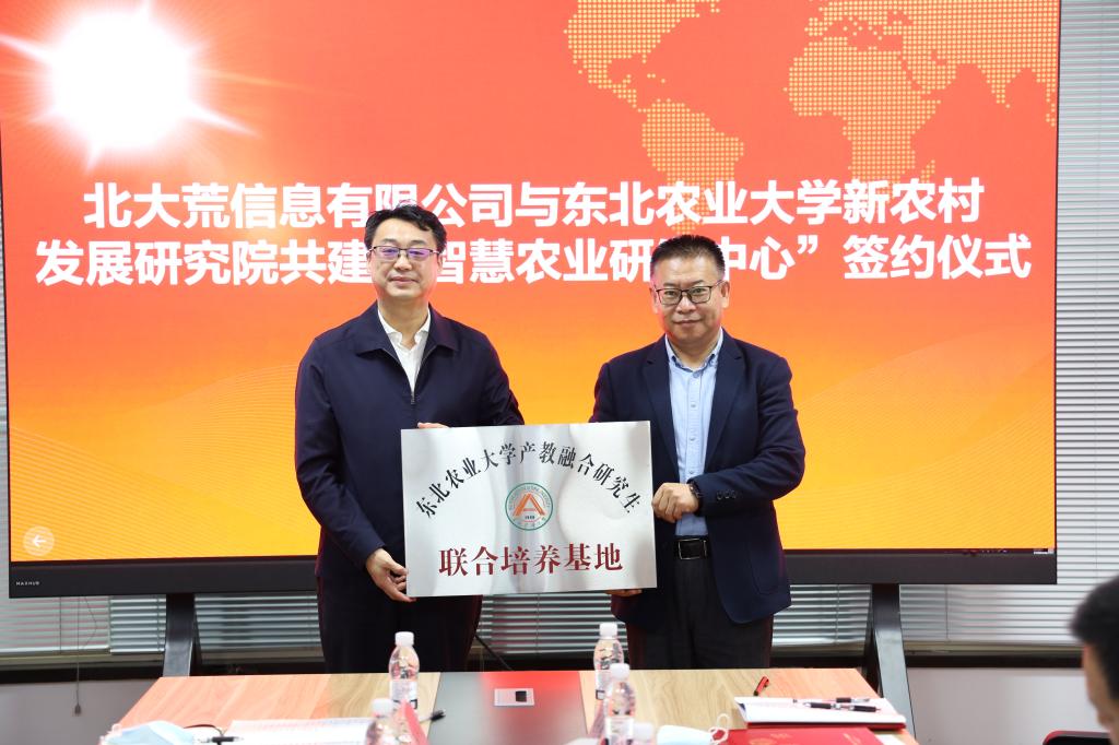 第三项,针对“培养基地”,yl6809永利官网陈庆山院长与北大荒信息有限公司任荣荣副总经理就“培养基地”签订合作协议,东北农业大学研究生院刘世英院长与北大荒信息有限公司张允海董事长为“培养基地”揭牌。陈庆山院长为张允海董事长等四位专家颁发外聘导师聘书。