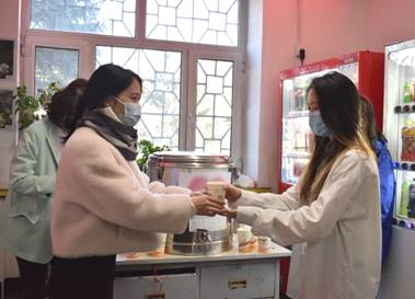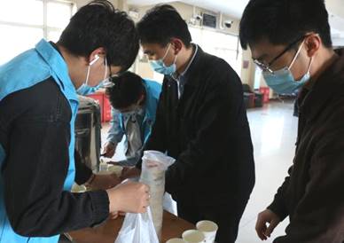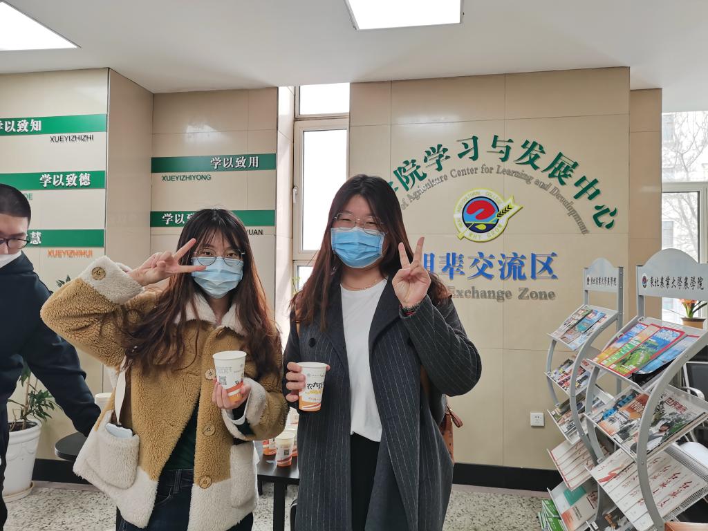 研究生们在学院领取暖心豆浆