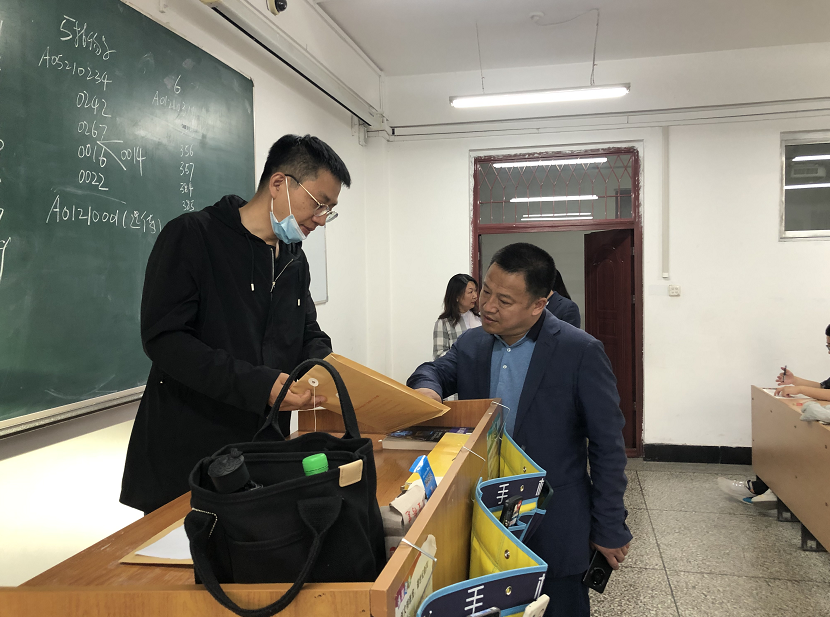 2022年6月9日,院党委书记武小霞、院长陈庆山、副书记张华英、教学副院长张林等人一行对yl6809永利官网期末考试的相关考场进行突击检查,重点检查了考场秩序、监考教师履职、考生答卷等情况。考试过程中,院领导深入到考场查看学生作答情况,与考务工作人员共同查看考试缺考学生记录清单、询问考试工作相关情况,并嘱咐监考教师认真履行职责。各考场秩序井然,考试纪律良好。